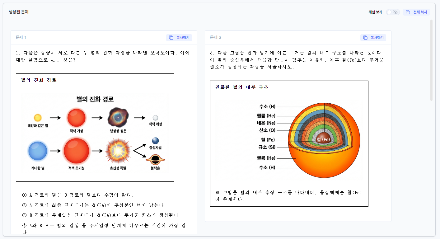 - 시험 문제에 맞는 이미지 생성(Beta) 기능까지 구현되어 있어요